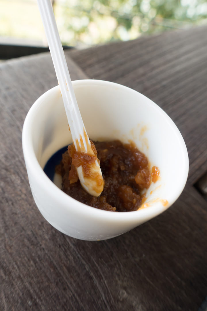 女将さんが試作した辛味噌は、ご飯との相性がばっちりでした。