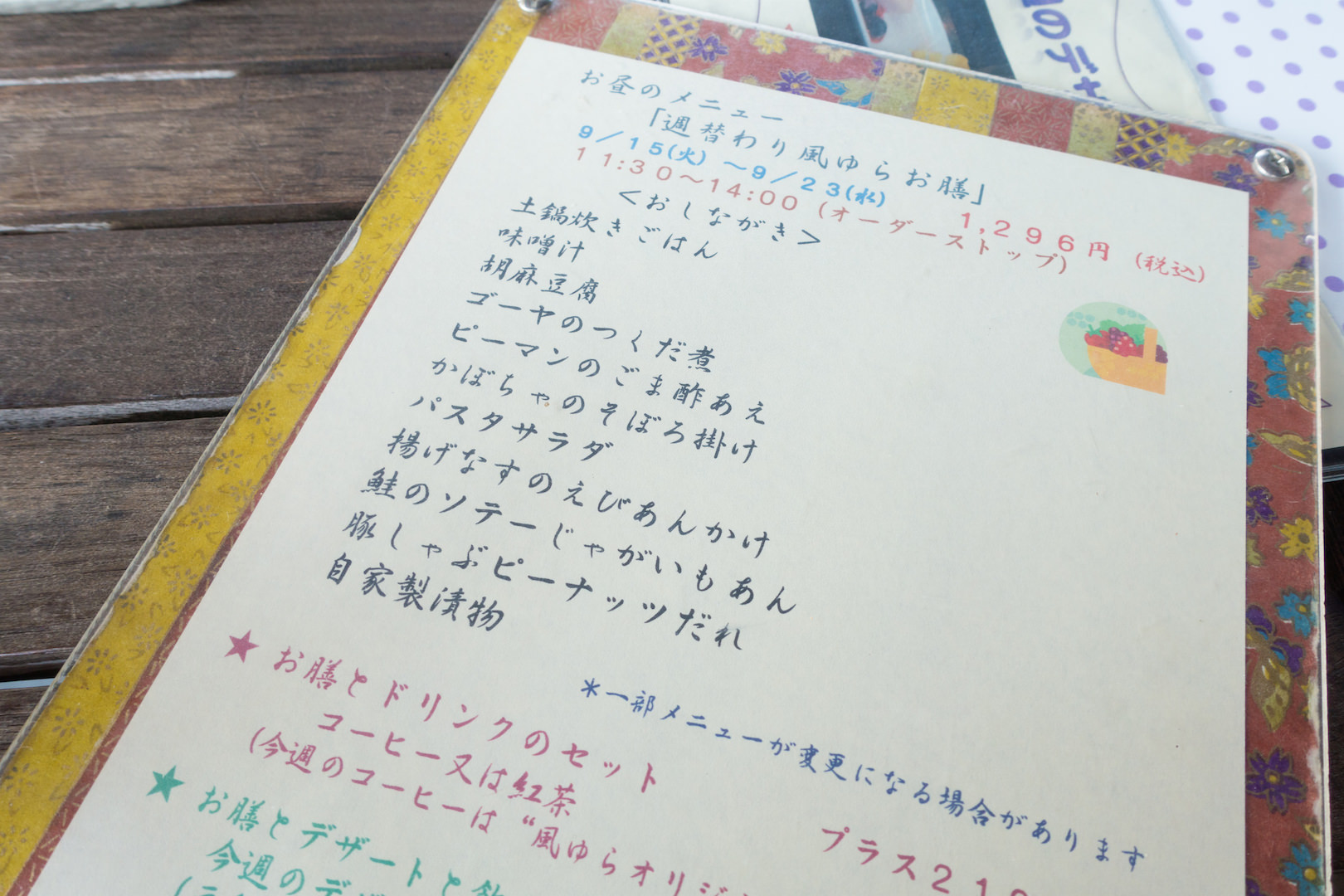 ランチメニューは、「風ゆらお膳」の一種類のみです。